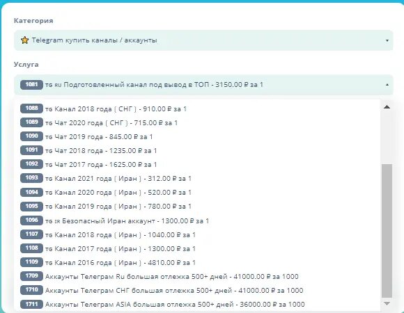 Канал должен быть создан на Российской сим-карте, причем чем раньше он был создан, тем лучше, так как он становится более устойчивым к жалобам. Идеальным вариантом является приобретение канала возрастом 2-3 года. Примерные цены на скриншоте ниже.