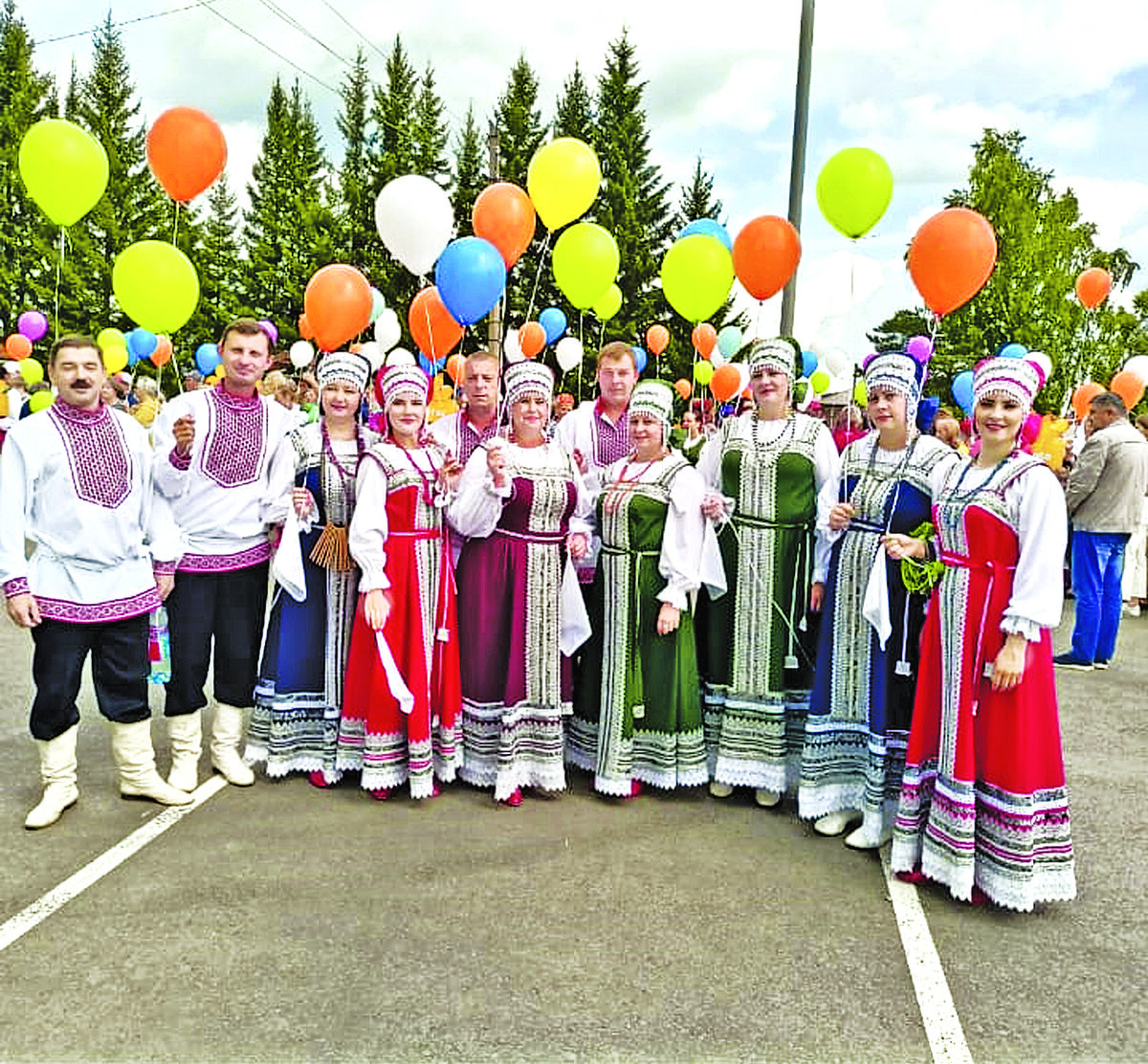 Самодеятельный коллектив сейчас состоит из 13 человек. Все работники Дома культуры поют в ансамбле: и заведующая библиотекой, и девочки из техперсонала, и основные творческие работники. Только дворник и водитель ещё пока не запели.