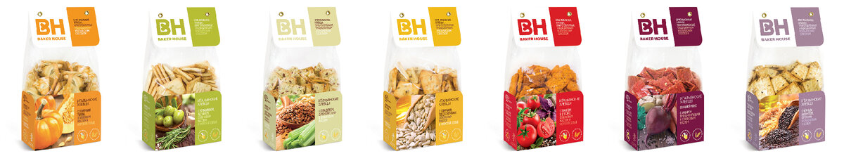 Согласно классической итальянской рецептуре хлебцы BAKER HOUSE выпекаются в специальной печи туннельного типа на открытом огне.