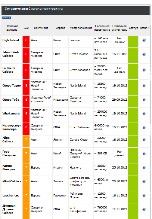 Рассматривая таблицу о системе мониторинга супервулканов, я обратил внимание, что за последний миллион лет лишь два супервулкана взорвались в первой половине этого миллиона лет, а пять супервулканов в промежутке от 74 тыс. лет до н.э. до 12 900 лет до н.э., то есть за время предполагаемых вспышек Красного Сириуса.