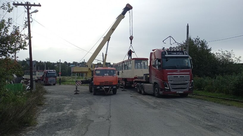 В Краснотурьинск привезли трамваи из Челябинска, которые заменят старые вагоны. Фото, видео