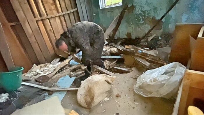 Не надеялся найти, что интересного, просто вытаскивал металлические балки. А тут нашел мешок: