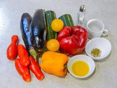 Ингредиенты. 1 Шаг. Как потушить баклажаны с овощами? Подготовте все необходимые ингредиенты. Баклажаны и Кабачки берите среднего размера, помидоры должны быть сочные, но плотные. Перцы вкуснее с мясмстымт стенками. 2 Шаг. Баклажаны и кабачки помойте и обсушите, удалите плодоножки. У кабачка удалите семена и почистите от кожуры. Порежте все небольшими кубиками. 3 Шаг. Старайтесь все овощи нарезать одинаковыми кубиками, что бы блюдо выглядело аккуратно. Перец помойте, удалите плодоножку и семечки, нарежьте кубиком. 4 Шаг. Помидоры помойте, удалите плодоножку и нарежьте кубиком. 5 Шаг. Возьмите широкую сковороду, с диаметром 24-26 см, чтобы свободно поместились все ингредиенты. Разогрейте сковороду на большом огне, вылейте на нее масло. Когда масло разогреется, сделайте огонь немного меньше и выложите в сковороду баклажаны. Жарьте, периодически помешивая, до легкой румяной корочки. У меня ушло около 4 минут. 6 Шаг. Затем добавьте Кабачки, перец и 2-3 столовые ложки горячей воды. Во