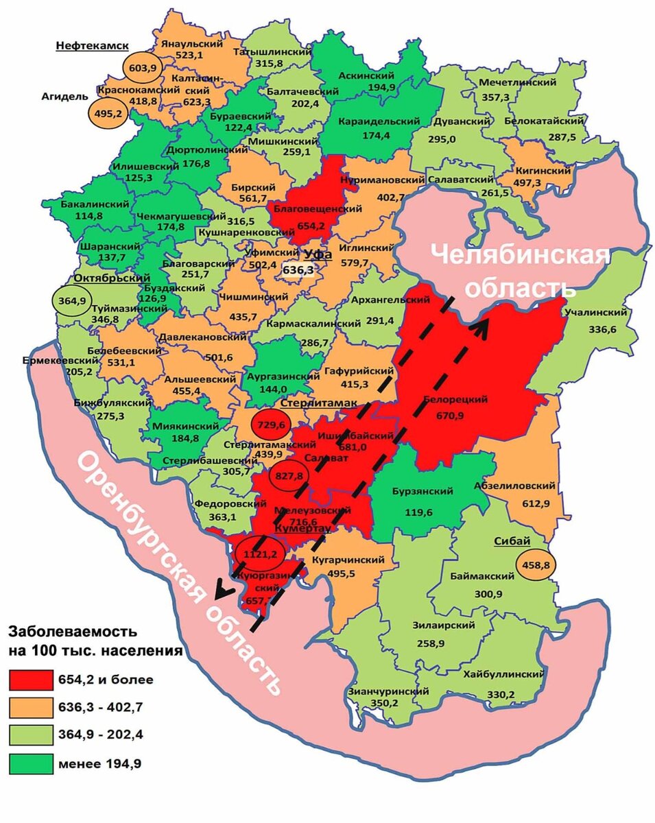 — Надо отметить, что уровень обследования напрямую влияет на число инфицированных. Например, в Дуванском районе, где прежде стабильно обследовались не более 15 процентов жителей, в прошлом году на наличие вируса проверили 40 процентов. В итоге 32 человека получили положительный результат, — пояснил Рафаэль Яппаров. — В Абзелиловском районе выявлено 43 пациента. Та же картина в Мелеузовском, Альшеевском, Мишкинском и Балтачевском районах.