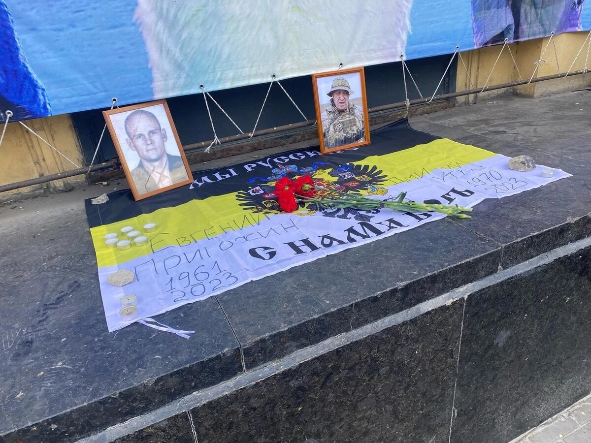 Аналогичные мемориалы образовались во многих российских городах. На фасаде ростовского цирка появились фотографии главы ЧВК «Вагнер» Евгения Пригожина и командира ЧВК Дмитрия Уткина. Оба фото размещены на фоне российского имперского флага. На флаге надпись: «Мы — русские, с нами Бог». Люди несут к мемориалу цветы. Здание цирка выбрано не случайно. 24 июня бойцы ЧВК «Вагнер» во главе с Евгением Пригожиным пришли в Ростов и взяли под контроль периметр у здания ЮВО. Ворота цирка бойцы загородили танком. Снимок танка разлетелся по сети. Многие решили, что многотонная военная машина застряла в воротах, но бойцы пояснили, что танк перегородил пути отхода всем, кто решит сбежать из штаба ЮВО. Больше фото и видео в нашем telegram-канале Накануне вечером, 23 августа, бизнес-джет Пригожина Embraer Legacy 600, совершая рейс из Москвы в Санкт-Петербург, потерпел крушение в Тверской области. По данным Росавиации, на рейсе были зарегистрированы сам Евгений Пригожин, его заместитель Валерий Чекалов,