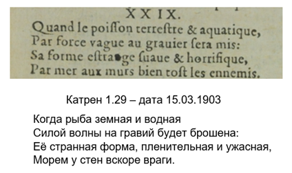 Честно говоря, я никак не ожидал, что за более чем 6 месяцев, прошедших с момента появления электронной версии моей книги в продаже, не найдётся ни одного человека, знающего русский язык, который захотел бы проверить правильность воссоздания мной схемы выбора и сокрытия дат, придуманной Нострадамусом. Хотя бы просто из любопытства - "А вдруг у автора этой книги действительно получилось то, что до него за прошедшие более чем 450 лет никто так и не смог сделать?". И/или такого человека, который, используя определённые мной даты предсказаний, захотел бы понять, какие именно события он описал в тех из предсказаний, даты которых уже миновали. Неужели никому не хочется внести свой, пусть и небольшой, вклад в понимание его предсказаний? Ведь тот, кто сделает это первым, "навсегда останется в памяти благодарных потомков", так как поспособствует продвижению по пути к истине, окончанием которого является полное понимание тех из его предсказаний, даты которых уже наступили, и максимально возможно