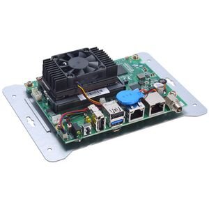 Подобно готовым компьютерам Axiomtek AIE, комплект AIE110-ONA собран по схеме "платформа+модуль", в которой процессорный модуль производства NVidia устанавливается в разработанную Axiomtek плату-переходник. Плата отвечает за разъёмы для внешних и внутренних подключений, а также предоставляет модулю схемы питания. Помимо схем питания на ней находится дополнительный контроллер Gigabit Ethernet, который будет работать совместно с встроенным в модуль, а также слот M.2 2280 M key. Для плат расширения предназначен слот Mini PCIe. Плата-перегодник установлена на пластину, которую можно крепить либо к стене либо к корпусу готового устройства.