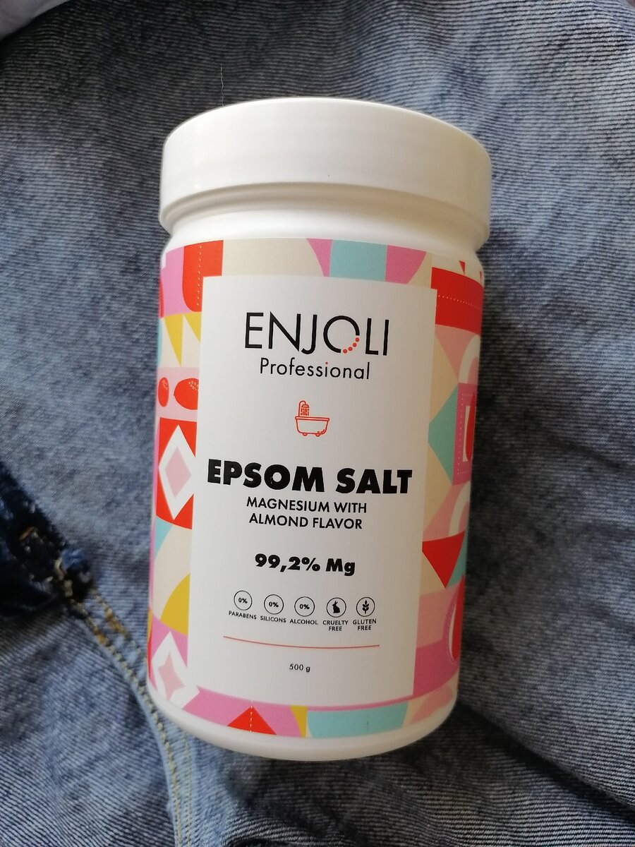 Всем доброго времени суток! Кто из нас не любит полежать в ванне после трудного дня, когда нет сил ни на что и хочется расслабится и потом хорошо и крепко уснуть? Так как я с такими процедурами на ТЫ, продукт от бренда Enjoli - Английская соль для ванны с магнием, успешно пополнила ряды моих любимых средств для принятия ванны. Так, объем продукта 500 г. (что весьма хорошо, большой объем+) Немного о самом продукте:Английская соль с магнием для ванной - натуральное SPA-средство, которое помогает снять напряжение, усталость, боли в мышцах, а так же способствует похудению и крепкому сну. Идеальное завершение долгого дня. Эксклюзивный аромат сладкого миндаля наполняет ванную комнату и помогает расслабиться и переключиться. Скрыть цитату Использовала соль уже несколько раз и она мне абсолютно всем понравилась (я даже брала её с собой в Питер, поскольку расслабится там после тяжелого дня ну очень ВАЖНО), отдельно хочу отметить плюсы продукта: Таким образом, Английская соль для ванны с магние