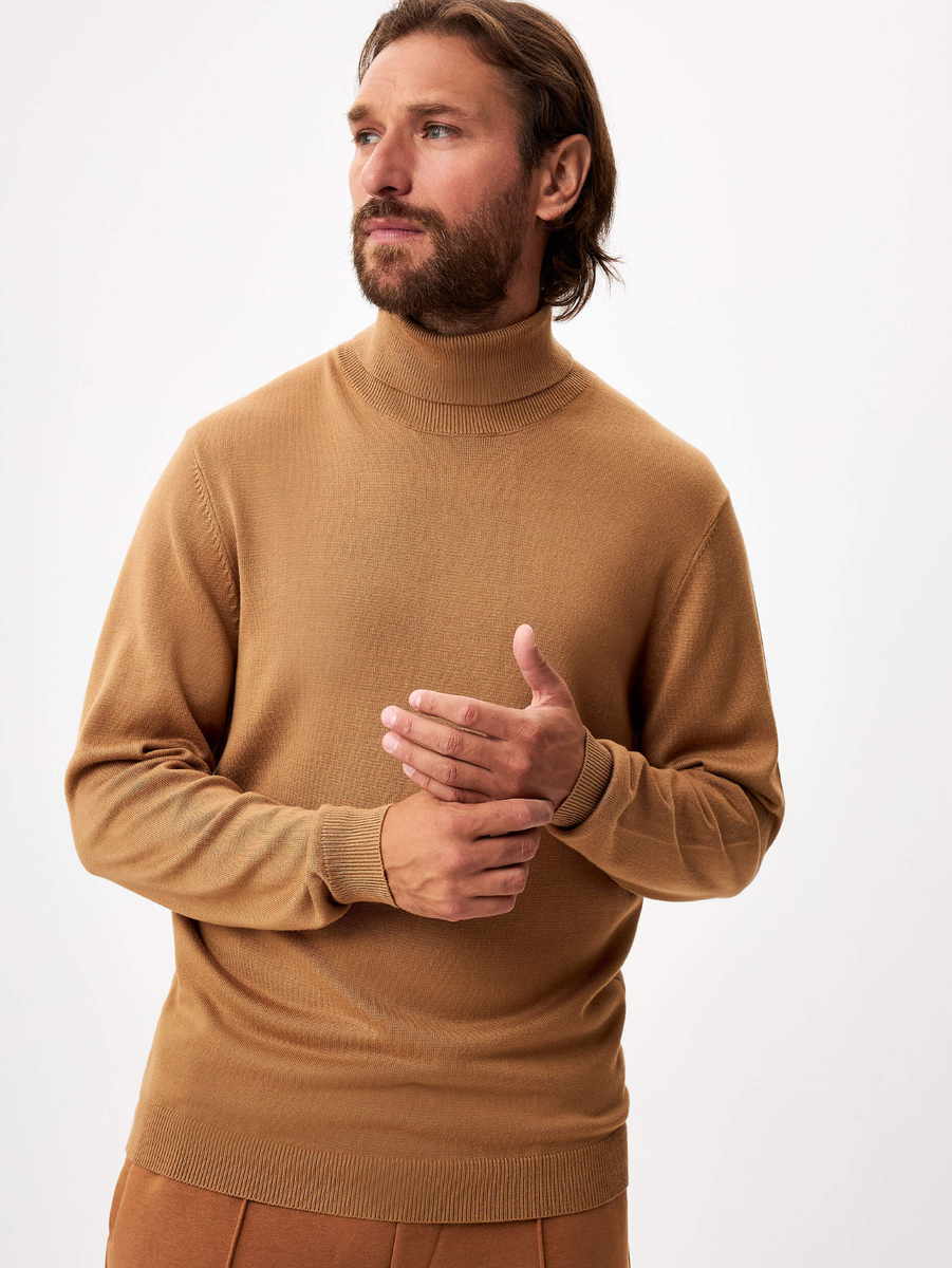 Модель представлена в четырех базовых оттенках – черном, песочном, оттенке хаки и сером. Водолазка в меру тонкая (идеально под пиджак), в меру свободная (не будет слишком облегать фигуру), и с хорошим составом – 80% вискоза, 20% полиамид.
