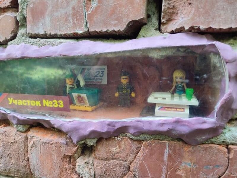 За последние несколько недель во Владимире появилось сразу несколько работ от уличных художников и креативщиков. Однако одна из работ особо привлекает своей актуальностью для региона. В телеграм-канале "Местные жители" пользователь поделился фото интересной инсталляции: в стене здания изображена миниатюра избирательного участка во время выборов в Законодательное Собрание 33 региона. За куском пластика между кирпичами расположился момент голосования: 3 фигурки из конструктора лего олицетворяют избирателя, охранника и члена участковой комиссии. Поражает детальность работы: баннер и тематические наклейки, связанные с выборами. Кто именно изобразил данную картину - неизвестно. Однако уверены, что она привлечет внимание не только туристов, но и местных жителей.