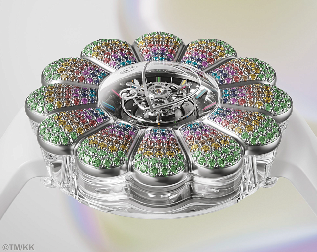 Модель MP-15 Takashi Murakami Tourbillon разработана специально для аукциона Only Watch, торги которого проходят раз в два года, а выручка идет на исследование редчайшего генетического заболевания – мышечной дистрофии Дюшенна Часы MP-15 Takashi Murakami Tourbillon созданы в коллаборации с японским художником Такаси Мураками, который начал сотрудничество с Hublot еще в 2020 году.Цветочная композиция занимает центральное место в творчестве художника, а совместные работы с часовым брендом всегда выпускаются ограниченным тиражом. Часы MP-15 уникальны не только по своей природе (было создано только одно изделие), но и по своей конструкции. Что отличает MP-15 от любого другого изделия, когда-либо созданного мануфактурой за более чем сорокалетний опыт, так это его центральный парящий турбийон. Идея также состоит в том, чтобы показать, что турбийон — бьющееся сердце часов — олицетворяет сердце человека, который покупает их на аукционе в помощь исследованиям по борьбе с болезнью Дюшенна, а та