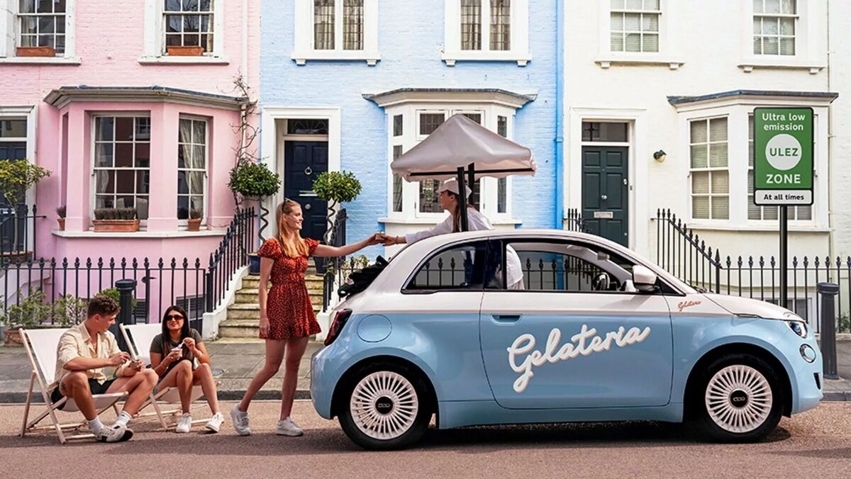 Компания Fiat представила концепт на базе электрической версии модели 500. «Малыш» превратился в фургончик для перевозки мороженого. Fiat 500e Gelateria Edition построен на базе кабриолета, дополненного всем необходимым оборудованием для раздачи мороженого в зонах со сниженным уровнем вредных выбросов на территории Великобритании. Fiat называет эту модель «самой маленькой в мире джелатерией». Несмотря на свои компактные размеры, специальный 500e способен обслужить около 300 человек в день. В салоне находится витрина-холодильник. Товар хранится в двух морозильных камерах с аккумуляторами общим объемом 30 литров, а для рожков, ванночек и ложек отведено специальное место. Все пассажирские сиденья снимаются, превращая 500e в одноместный автомобиль, которым управляет мороженщик. Кроме того, в автомобиле предусмотрены места для хранения шезлонгов, чтобы покупателям было куда присесть. Для внешнего оформления Fiat выбрал двухцветную окраску со светло-голубыми и кремовыми оттенками, напоминающ