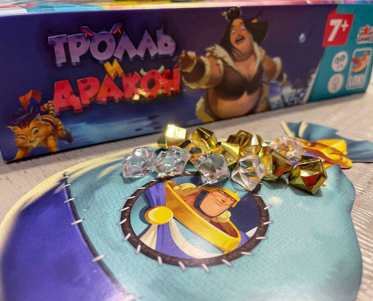 Ника скоро уедет в гости к бабушке, поэтому давайте порассказываю про игры, в которые мы играем в последнее время. Одна из таких, которая её очень зацепила, и она, не останавливаясь, теребит меня словами «давай ещё!» — настолка «Тролль и дракон». Это игра от издательства Loki, известного своим шикарным продакшеном, и я уже не раз писала про их игры — в наших фаворитах, например, «Спасите Дино» и «Атака Кракена». «Тролль и дракон» — игра не кооперативная, в отличие от настолок выше, а соревновательная — и в этом весь прикол и всё веселье! Представьте, что «Зомби-кубики» соединили с «Жадюгами» и немного упростили — и вот получится примерно «Тролль и дракон», отличная азартная семейная игра. Виталя в командировке, и мы пока играем только вдвоём, но игра явно раскроется лучше при бОльшем составе — думаю, уже втроём, но даже в таких наших мини-партиях Ника себя чувствует, по-моему, абсолютно счастливой:) Особенно, конечно, когда забирает у меня сокровища — но давайте обо всём по порядку. Вы