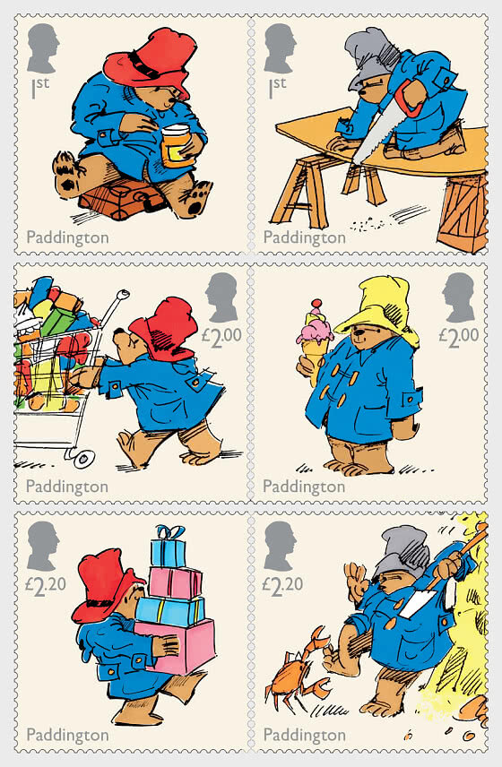 65 лет любимому говорящему медведю. Выпуск этой марки посвящен 65-летию самого известного говорящего медведя Перу — Паддингтона. Медведь, любящий мармелад, впервые появился в октябре 1958 года в книге «Медведь по имени Паддингтон», написанной английским писателем Томасом Майклом Бондом. Приключения Паддингтона в настоящее время переведены более чем на 40 языков, по всему миру продано более 35 миллионов копий, а дружелюбный медведь также фигурирует в нескольких сериалах и двух фильмах-блокбастерах, третий из которых находится в разработке. Набор из шести специальных марок с карикатурами Айвора Вуда на Паддингтона, первоначально опубликованных в газете London Evening News в конце 1970-х годов. Сувенирный лист Дизайн: Together Design