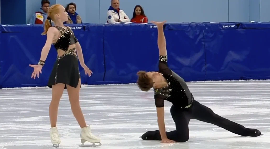 Единственная совсем новая пара на этих контрольных прокатах и производит многообещающее впечатление. С новым партнёром, немного повзрослевшая Настя смотрится очень органично, притом пока не хватает немного отработки и синхронности в движениях. Не лучшим образом исполнена поддержка и они стали единственной парой, кто допустил серьёзную ошибку на выбросе, приземление на две ноги.
