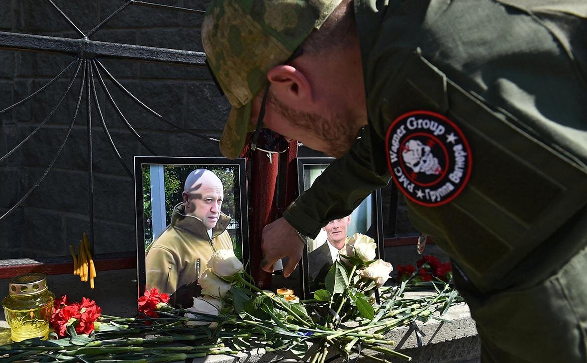 Стихийные мемориалы с фотографиями основателя ЧВК «Вагнер» Евгения Пригожина в разных городах России