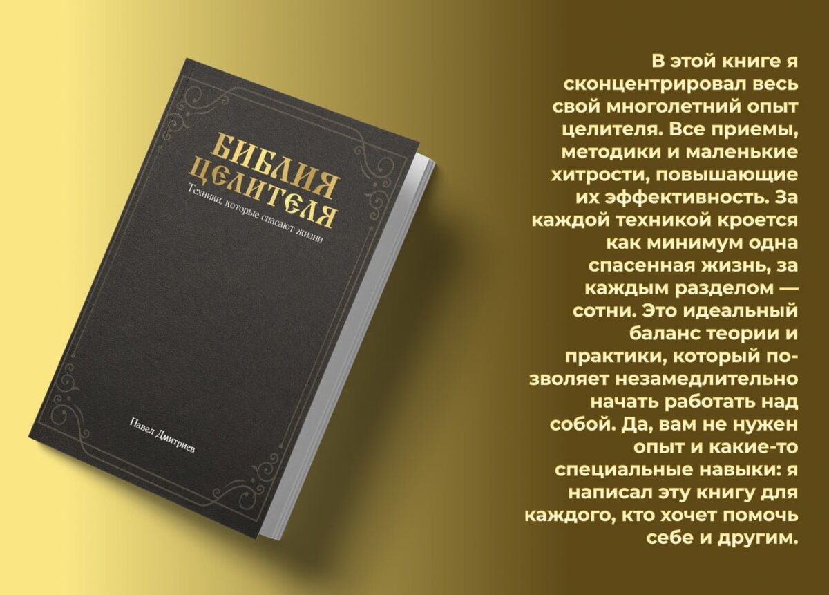 "Библия целителя" - главная книга об альтернативной медицине на русском языке и единственная, где собрано абсолютно все необходимое. Этот фундаментальный труд помогает исцелить себя, учит исцелять окружающих и показывает путь к истинному просветлению. Иными словами, делает человека по-настоящему разумным, здоровым и счастливым. А главное, объясняет, как делиться этой благодатью с окружающими. Формат книги: электронная книга в PDF. После оплаты вы получаете ссылку на скачивание с Гугл Диска. 💲 Цена: 10$ Для покупки писать в телеграм @fedluv #павелдмитриев #гипнокоучинготзывы