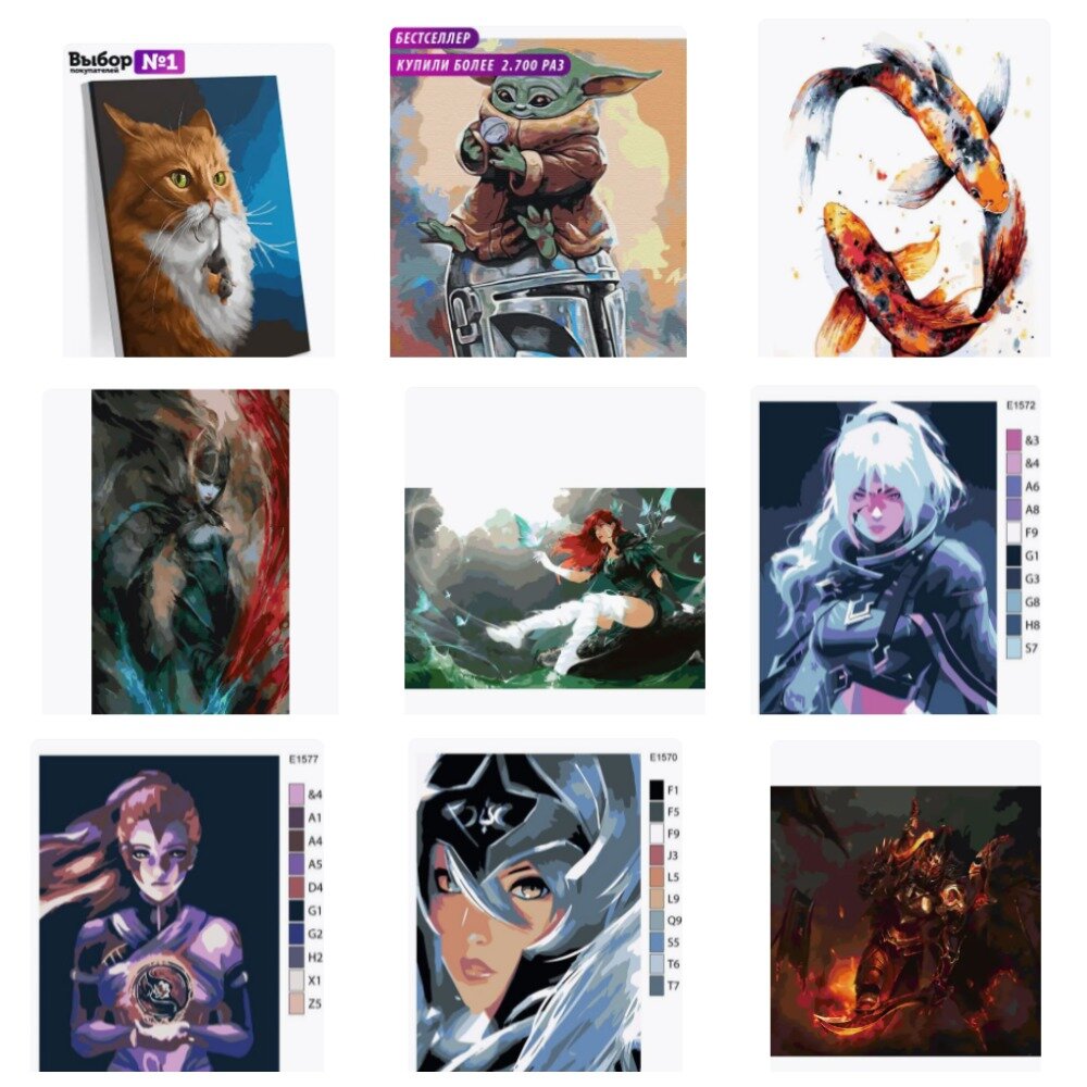 В среднем на картину уходит от 10 до 40 часов. Так как на WB было мало выбора картин с Дотой, а я хотела другу (модеру) подарить на день рождения картину с Пуджом, я приняла решение попробовать заказать картину по номерам с картинки. Рассматривала множество вариантов, как в Москве, так и по всему интернету. И в один момент мне присылают ссылку с AliExpress. Так как цена была всего 560 рублей, я решила попробовать заказать. Немного о продавце данных картин по номерам. Магазин называется PBYN Art Official Store.