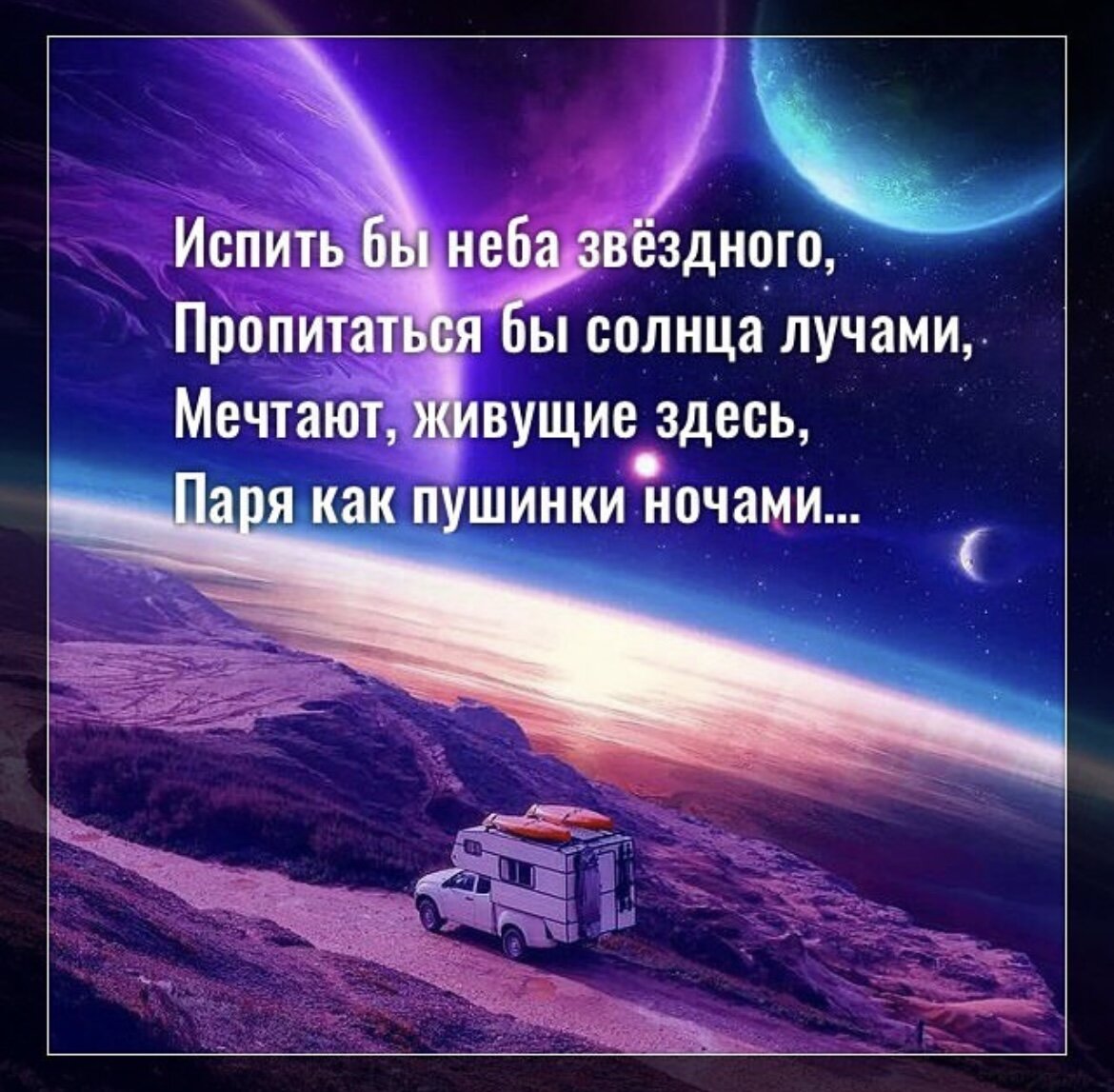 Испить бы неба звёздного, Пропитаться бы солнца лучами, Мечтают, живущие здесь, Паря как пушинки ночами. Вы итак состоите из звёзд И Божественного света, Но не все ощущают его, Вспоминают свою Планету… Научиться жить здесь и сейчас, Наслаждаясь минутой каждой, Может только Душа закалённая, Опытная, со стажем, Не цепляясь, не якорясь За вещи легко осязаемые, Всюду стремится к сути, Для неё все проблемы решаемы. Но и Душам совсем молодым Суть познать никто не запрещает, Просто чаще тревожит их быт И амбиции им мешают. Снять поможет природа усталость, Тоску по родному дому, У неё похожи вибрации, Они Душам очень знакомы. Поэтому не поленитесь Каждый день понемногу гулять, Среди мудрых, красивых деревьев, Чтобы Душу свою питать. ❤️
