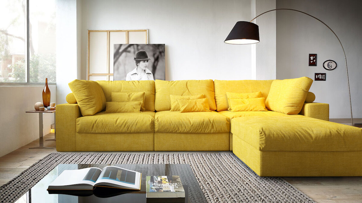 Самый ходовой - это г-образный диван. Он подходит для гостиной любой площади, если изготовить его по точным размерам. Вы также выбираете с какой стороны будет козетка (выступ), исходя из расстановки мебели или ваших предпочтений. С Gliver менять местами части дивана очень легко, их вес в среднем в 3 раза меньше каркасных аналогов.