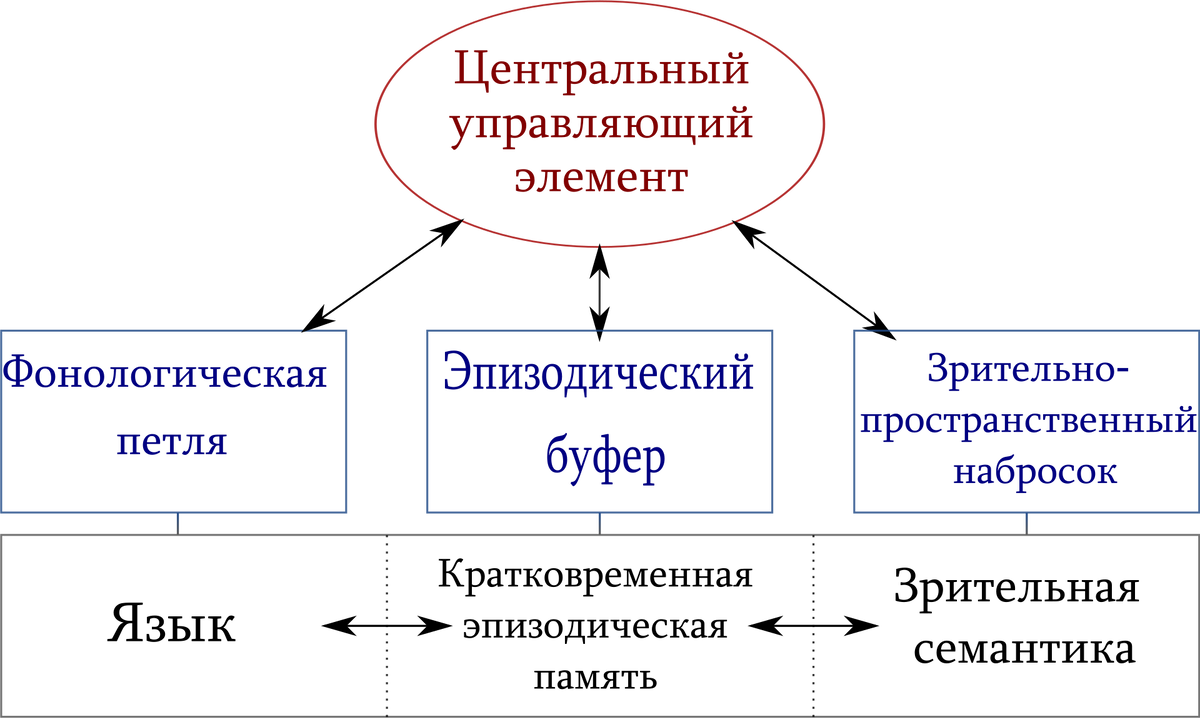 Бэддели и Хитч разработали когнитивную теорию, которая не только учитывает стандартные операции вербальной и невербальной, краткосрочной и долгосрочной памяти, но также уделяет внимание целенаправленному поведению, принятию решений и торможению. Их первоначальная модель включала в себя центральный исполнитель и две подсистемы, фонологическую петлю и визуально-пространственный блокнот. Бэддели расширил функции центрального исполнителя, добавив новый компонент, эпизодический буфер, который он рассматривал как объединяющий и временно хранящий информацию из двух других подсистем и служащий временным хранилищем памяти для центрального исполнителя. Фонологический цикл состоит из двух элементов: кратковременного фонологического хранилища речи и других звуков и артикуляционной компонентой перезаписи, которая сохраняла и повторяла информацию либо вокально (голосом) либо субвокально (безмолвно). Бэддели считал важной целью фонологического хранилища усвоение и понимание языка. Он предположил, что визуально-пространственный блокнот включает в себя обслуживание и внедрение визуальной и пространственной информации, которые освежаются в памяти за счет повторения.