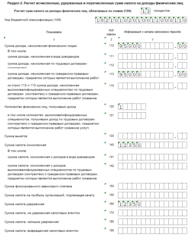 Пример заполнения 6-НДФЛ по гражданско-правовому договору