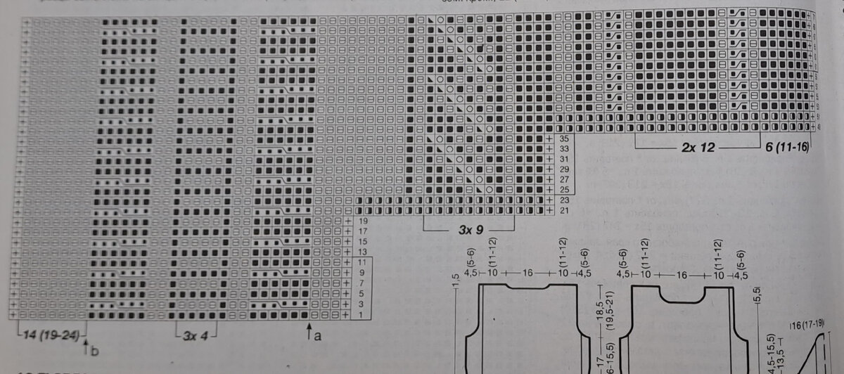 Добрый день! Ещё одна модель из журнала Верена. Кто любит туники, сохраняйте себе идею. А можно связать длину покороче, и получится джемпер. Размеры: 36/38, 40/42 и 44/46 Материалы: пряжа Monika Design Yarns Machu Picchu" (100% Роял Бэби Альпака, 187 м/50 г) - 350 (400-450) г серого цвета № 802; прямые спицы addi № 3,5, круг. спи-цы addi № 3,5 длиной 40 см, крючок № 3,5. Комбинация узоров: вязать по схеме, общие указания см. А2. Числа у нижнего края схемы указывают на кол-во п. либо кол-во повторений данной группы п. Для переда и спинки вязать 1х ряды 1-24, затем 2х ряды 25-36. После этого вязать 1х ряды 49-71 и затем постоянно повторять ряды 61-71. Для рукавов вязать 1 х поперечную резинку с косами на 30 п. от стрелки а до b, при этом постоянно повторять ряды 1-12. Плотность вязания: 27 п. и 37 р. лиц. и изн. глади = 10 х 10 см, 30 п. и 37 р. поперечной резинки с косами = 10 х 10 см, 28 п. и 37 р. комбинации различных узоров = 10 х 10 см, образцы выполнены на спицах № 3,5. Внимание