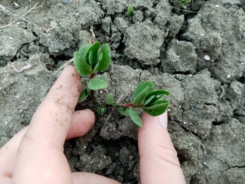 Потепление климата грозит огородникам не только появлением нетипичных для региона насекомых-вредителей и болезней деревьев, но и новыми сорняками. К счастью, не все они вредные. Вот, к примеру, портулак огородный. Он давно стал сорняком на юге и в средней полосе РФ, а теперь пробирается все севернее. Если однажды сильный южный ветер принесет его к вам на огород, то буквально через 3-4 дня на грядках появятся вот такие первые "поселенцы". Они выглядят безобидными только первые пару дней. Начав стремительно кидать ползущие стебли во все стороны, захватчик что есть сил кинется закрывать землю, мол "здесь все мое!" Можно выдергивать его. Но это плохо помогает: стебель обрывается легко, а от корня снова идут плети, еще гуще. Можно выкапывать. Но он быстро вырастает вновь, уже на других местах. Семян на участок прилетает сразу много, тонкие корни расползаются глубоко под землей и прорастают где им вздумается. Тем огородникам, которые не хотят травить землю гербицидами, хочется побольше узнат