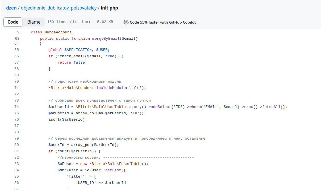 LIMIT 0, 10 В итоге нам известен список email адресов с дубликатами. Далее проходим по каждому и переносим его заказы, профили покупателя на другой аккаунт. При необходимости можно доб