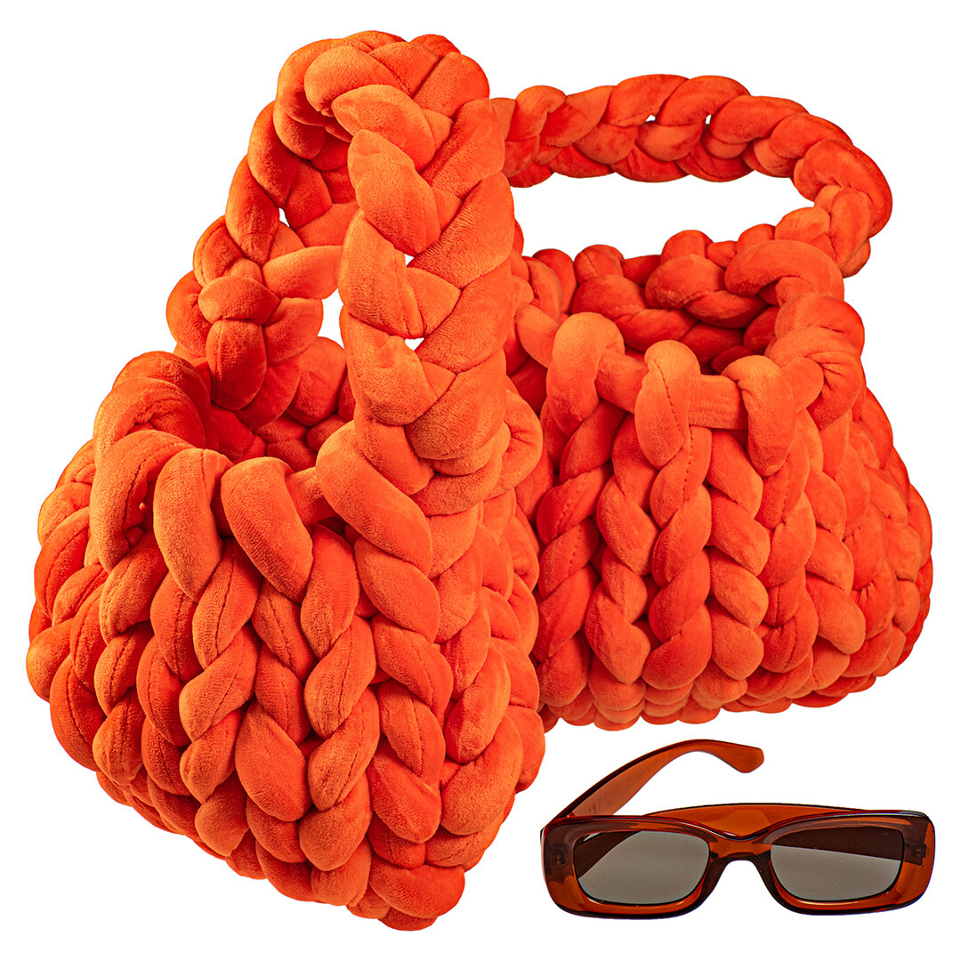 1. Делаете руками первую петлю из трубчатой пряжи Safina и продеваете в нее нить – образуется воздушная петля. Вытягиваете петли друг за другом. У вас должна получиться косичка из 7 воздушных петель. Старайтесь делать петли одного размера. 2. 1 и 7 петля – боковые. С 7 петли начинаете вывязывать первый ряд. 3. С двух сторон, через боковые петли косички, вытягиваете по 5 воздушных петель. Всего должно быть вытянуто 12 петель – первый ряд готов. 4. Продолжаете вытягивать петли по кругу. Таким способом провязываете 6 рядов. 5. Через 11 открытых верхних петель 6 ряда протягиваете нить. Нить продеваете с изнаночной стороны и выводите на лицевую. 6. Продеваете нить в 12 петлю и делаете ручку-косичку из 10 или больше воздушных петель. 7. Закрепляете ручку-косичку на противоположной стороне. Выводите кончик нити с изнаночной стороны на лицевую и продеваете через последнюю открытую петлю, затягиваете и выводите на изнаночную сторону. Из 1 кг трубчатой плюшевой пряжи получились 2 сумки. Можно вя