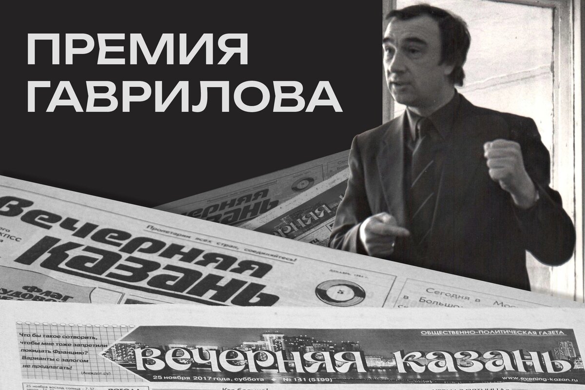 Вы умеете работать со словом и знаете, как сделать материал, который вызовет интерес аудитории. Хотите получить профессиональное признание - премию имени одного из величайших редакторов. А раз это премия, значит к ней полагается денежный приз. «Что для этого надо?», — спросите вы. Отвечаем. Стать участником конкурса, который запускает «Вечерняя Казань». Для себя мы его назвали «Премия Гаврилова». Андрей Петрович Гаврилов - это тот, кто придумал и создал «Вечерку». В дань памяти и уважения к его труду и таланту редакция издания решила учредить ежегодную премию. Заявиться на конкурс может как профессиональный журналист, так и блогер. Главное уметь находить интересное, докапываться до истины и любить создавать тексты о происходящих событиях. Для участия нужно прислать оригинальную работу на русском языке, ранее не опубликованную в СМИ и интернете. Материалы могут быть написаны в жанре журналистского расследования, репортажа, интервью, заметки, статьи, рецензии, фельетона или эссе. В специ