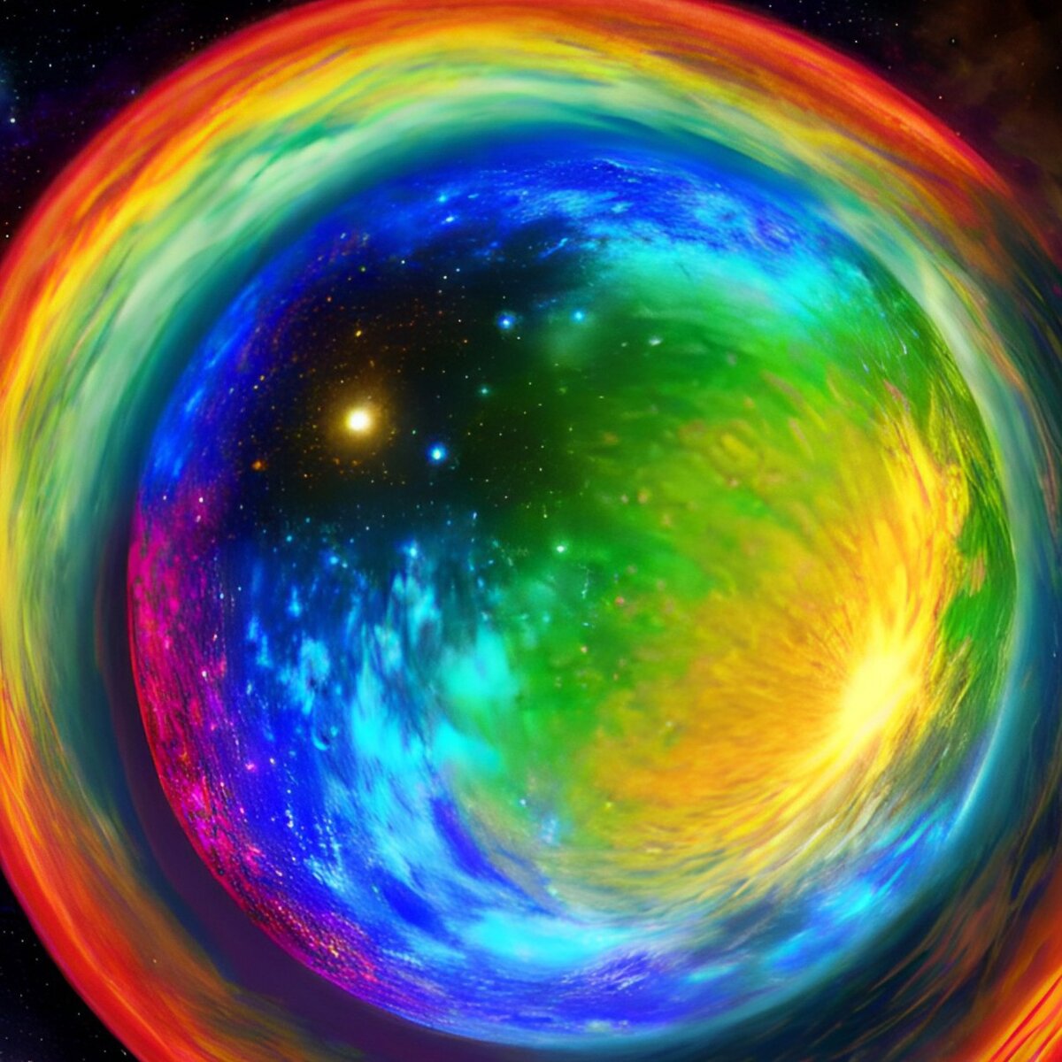 Однажды он увидел планету, ландшафт которой переливался всеми возможными красками. На обманчивую атмосферу газовой планеты это было не похоже - угадывались жёлто-оранжевые луга, красно-коричневые леса, зелёно-голубые холмы и розовые реки.