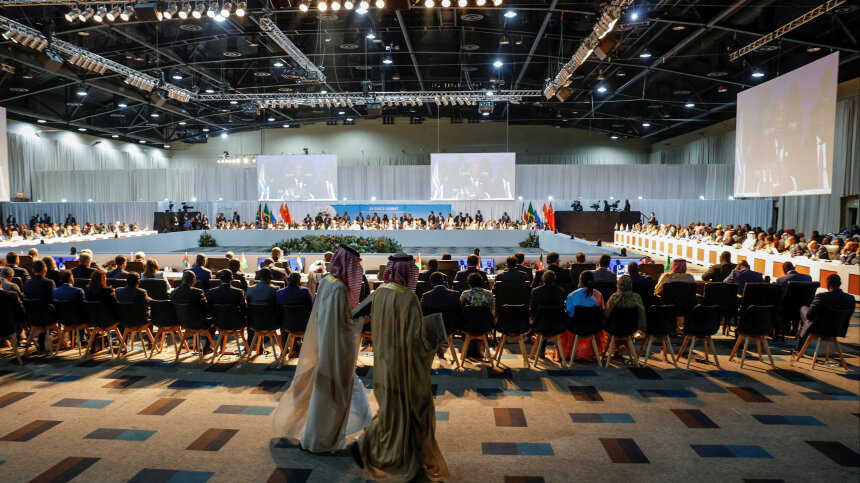 Президент Белоруссии увидел в прошедшем мероприятии большой прорыв в борьбе с западной гегемонией. Фото: Reuters / POOL Прошедший саммит БРИКС и дальнейшее расширение этого союза — сильный шаг на пути к многополярному миру. Так президент Белоруссии Александр Лукашенко оценил итоги мероприятия в Йоханнесбурге. «Есть о чем думать и о чем задуматься. Это очень сильный шаг к многополярному миру», — приводит его слова агентство Белта. Однако западная гегемония пока не закончилась, отметил белорусский президент. Но он убежден, что страны БРИКС и их планы заставили напрячься политиков высокого уровня. Так Лукашенко описал свое видение прошедшего мероприятия. Пятнадцатый саммит БРИКС проходил в Йоханнесбурге с 22 по 24 августа. Эксперты считают его «переломным моментом» в мировой политике. После заявления о расширении союза свое желание вступить в него выразили около 30 государств, среди которых Аргентина, Иран, Саудовская Аравия, Египет, ОАЭ и Эфиопия. На встрече от Белоруссии присутствовал г