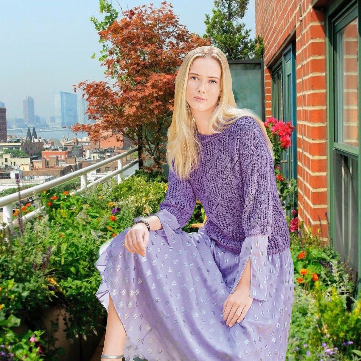 Насыщенный сиреневый оттенок - словно глоток свежего воздуха! Он оживляет и вместе с выразительным ажурным узором придает пуловеру с рукавами три четверти нечто особенное. Узкая резинка по краям обеспечивает стабильность, а пряжа из органического хлопка - верная примета наступающей осени.