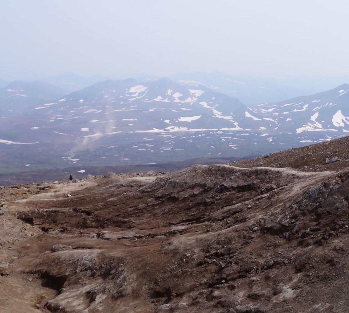 Этот день был очень насыщенным в плане походов. Перед восхождением на вулкан мы посетили лавовые пещеры, а после восхождения Дачные источники. В итоге телефон зафиксировал, что всего мы за день прошли 20 км и 336 этажей. Вулкан Горелый - действующий вулкан. Находится на юге полуострова. Имеет 11 кратеров. Один из кратеров называется «Голубое озеро». Мы выбрали этот вулкан в первую очередь за то, что подъем на него считается легким по сравнению с другими вулканами. Высота вершины - 1829 метров над уровнем моря. Перепад высоты 900 метров. Восхождение заняло у нас 2,5 часа, спуск 1,5 часа. У нас была индивидуальная экскурсия, поэтому мы ориентировались только на себя и шли в своем темпе. Это конечно намного приятнее, чем подниматься в группе. Не скажу, что было легко, но и не было такого переутомления, как в предыдущем восхождении к озеру в Бурятии. Я думаю - это в первую очередь заслуга нашего гида. Он, как опытный человек в этом деле, дал немало ценных советов. Во-первых перед вос