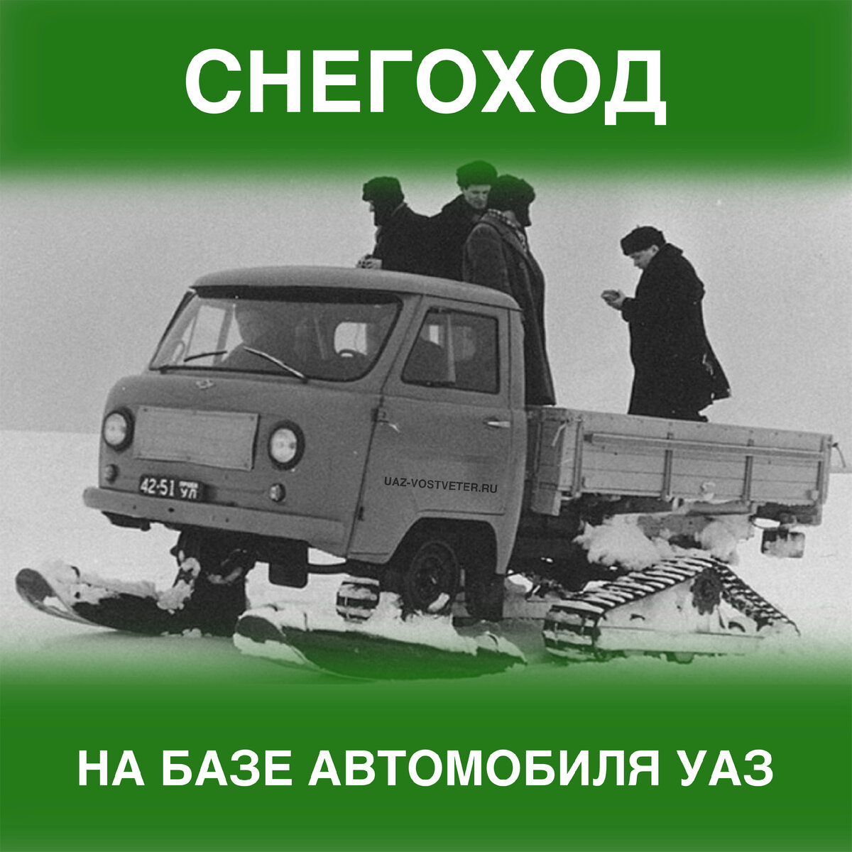 Продолжаем рассказывать про необычные модели Ульяновского автомобильного завода. ❄️ В этот раз хотим рассказать про УАЗ с уникальной конструкцией шасси для преодоления снежного бездорожья. Наверное вы догадались, что речь пойдет о гусеничном шасси, так как его установка является одним из лучших решений в создании вездехода. Работа над снегоходом от завода УАЗ началась в конце 1960 года, а в 1963 году прошли первые испытания. Модель была построена на базе УАЗ-451 и была укомплектована сменным сезонным оборудованием. Вместо передних колес устанавливались металлические управляемые лыжи, а вместо задних — резино-металлические гусеничные движители. Лыжи и гусеницы — сезонное оборудование, устанавливаемое на зиму для движения по снегу, а в остальное время года автомобиль использовался как обычный колесный. В конце срока испытаний, несколько автомобилей в зимних условиях прошли по маршруту Новосибирск — Омск — Кустанай — Уральск — Ульяновск. Машины практически не встречали непроходимых снежны
