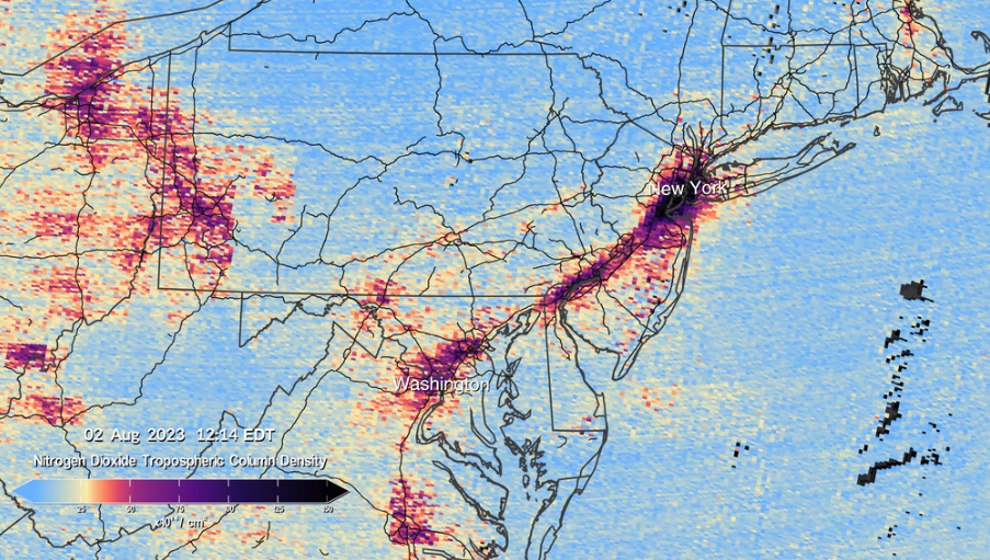 НАСА опубликовало карту загрязнений, сделанную из космоса миссией TEMPO