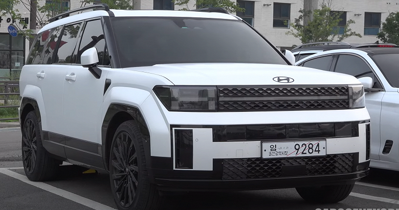 Новейший белоснежный Hyundai Santa Fe 2024 в исполнении Black Ink Edition показали вживую