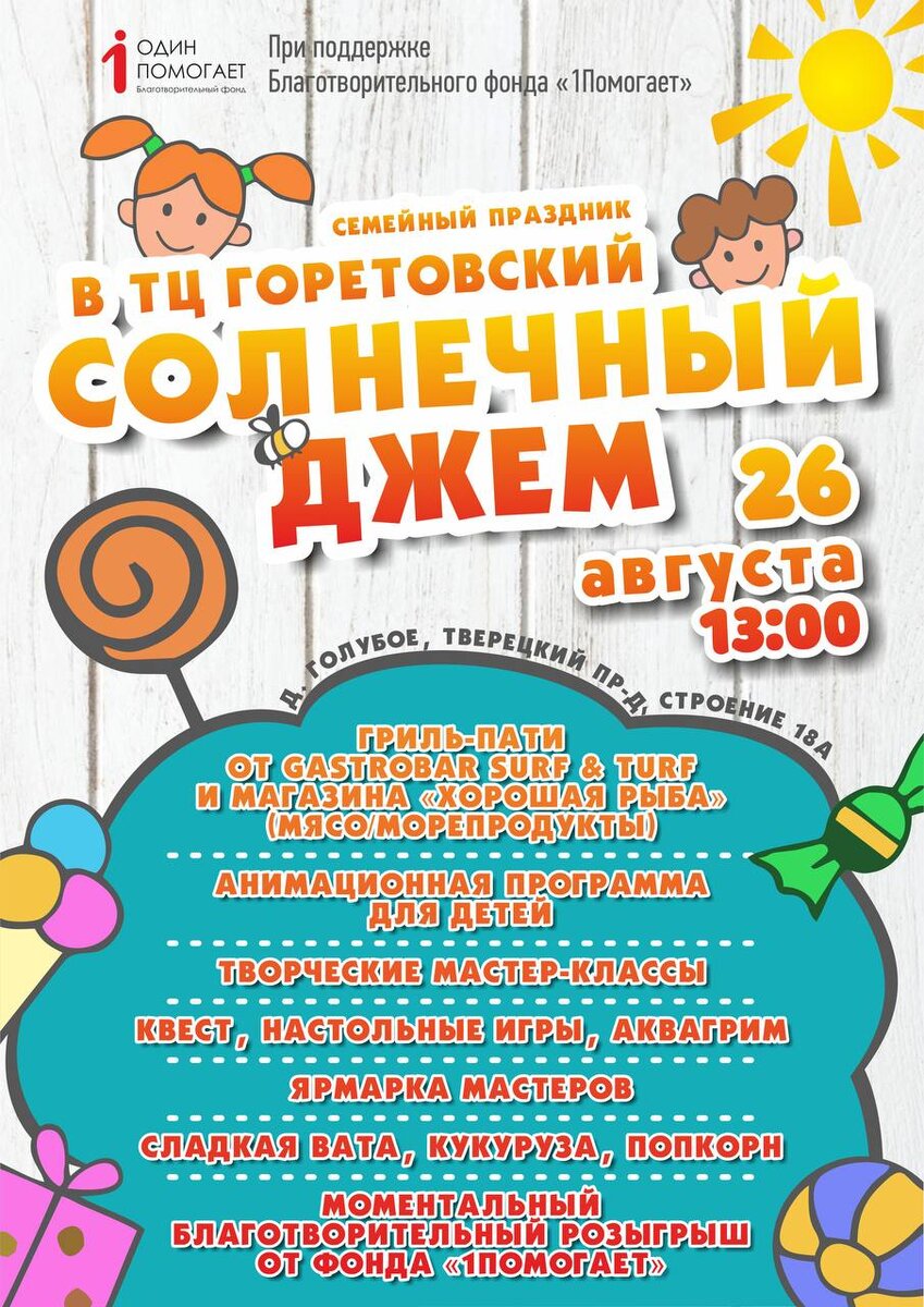 Развлекательная программа пройдет на территории ТЦ «Горетовский» при поддержке Благотворительного фонда «1Помогает» и объединит интересные и необычные мастер-классы, стать участником которых сможет любой желающий.