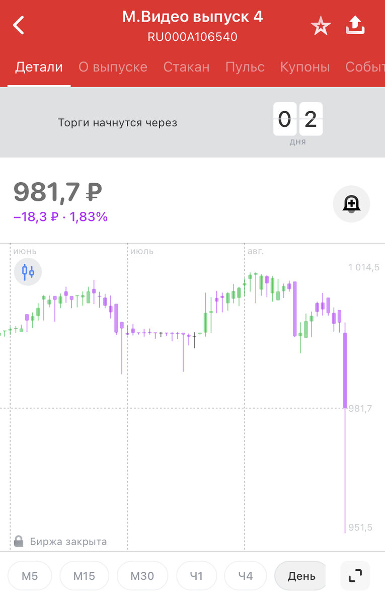 Сегодня облигации М.Видео дешевели до 5% после выхода плохого отчета.