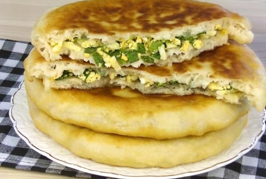 1.В миске смешиваем кефир с солью, сахаром, яйцом и содой, добавляем растительное масло. Перемешиваем чтобы не было комочков и начинаем постепенно подсыпать просеянную муку. Вымешиваем тесто, пока оно не станет мягким и не будет приставать к рукам, накрываем миску пищевой пленкой и ставим в сторонку на 15 минут. 2.Готовим начинку:очищаем от скорлупы яйца и рубим их мелко. Также мелко шинкуем подготовленную зелень и лук, солим, перчим закуска готова.
