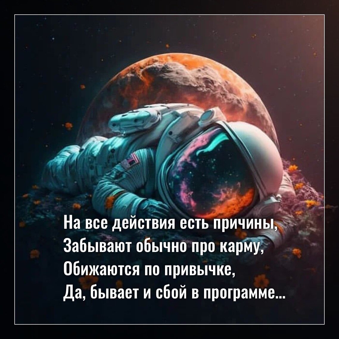 На все действия есть причины, Забывают обычно про карму, Обижаются по привычке, Да, бывает и сбой в программе, Да бывает, когда эту карму Нарабатывает обидчик, Но как правило вы сами ранее, Были причин таких «стычек». В любом случае, нужно Душе Со смирением относится К обстоятельствам «несправедливым», Нет смысла за честь эго биться, Если можно не реагировать И во благо урок принимать. Но не делайте ложных выводов, Только эго не может прощать. Душа же - поток безусловной Чистой и Божьей любви, Её исцеляющий свет Все обиды сожжет внутри, Главное помните, что Вы не эго пришли развивать, Вы воплотились, чтоб Душу Выше свою поднять. ❤️