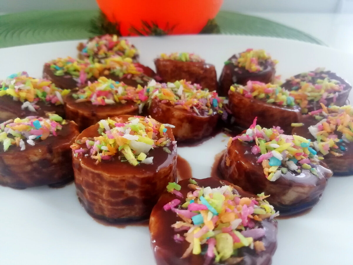 Рецепт бананов в шоколаде и приготовление пасты из арахиса. Вчера приготовила вкусную пасту из шоколада и арахиса. Ну и конечно же бананы в шоколаде. Все эти десерты я думаю понравятся не только взрослым, но и детям. К тому же эти десерты очень просто приготовить! Рецепт "Бананы в шоколаде" 1.Бананы 1-2шт. 2. Шоколад тёмный - 1 плитка. Нарезать банан кружочками. Растопить шоколад. Окунуть каждый кружочек банана в растопленный шоколад и выложить на тарелочку. Банановые кружочки удобнее обмакивать подхватив на вилку. Некоторые просто высыпают банановые кружочки прям в растопленный шоколад.И достают по одному кружочку. Сверху можно посыпать кокосовой стружкой. Затем ставим на несколько минут в холодильник. И всё! Вкусные бананы в шоколаде готовы! Рецепт шоколадной пасты с арахисом: Арахис очищенный не солёный покупаю в магазине. 1. Арахис 0,5 пачки 2.Плитка тёмного шоколада без ароматизаторов. 3.Маленькие контейнеры или баночка для готовой пасты. Растопить шоколад. Немного раз