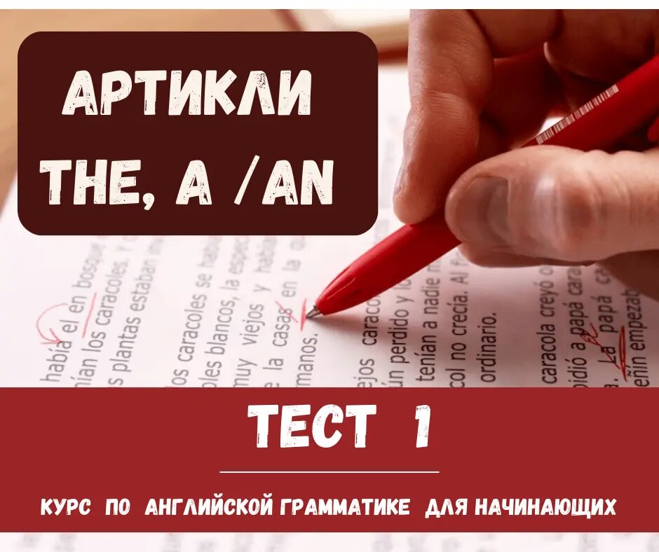 Если вы путаете английские артикли 'the' и 'a/an'" , прочитайте мою статью из первого урока "Курса по английской грамматике" и вы узнаете, как они работают. А для практики - пройдите сначала этот тест. Зная, как все изучающие английский мои ученики "любят" грамматику, я создала специальный курс-интенсив. Сложные вещи станут простыми, благодаря нестандартному объяснению, запоминающимся примерам и самое главное - мои авторским упражнениям. Вы поймете грамматику и это поможет вам стать настоящим "англоговорящим"! 😊 Готовы проверить себя? Пройдите этот интересный интерактивный тест на тему использования артиклей "a" и "the" - 6 вопросов: Вопрос 1: Выберите правильный вариант I saw ___ cat in ___ backyard. a) a / the b) the / a c) an / the d) the / the Вопрос 2: Выберите правильный вариант She has ___ apple and ___ orange. a) an / the b) an / an c) the / an d) a / the Вопрос 3: Выберите правильный вариант I'd like to buy ___ new book. a) a b) an c) the d) no article needed Вопрос 4: Выбери