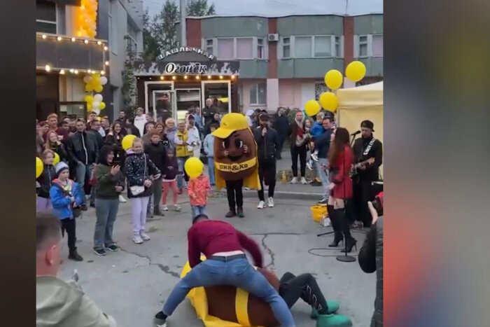 В Екатеринбурге на открытии магазина «ПивКо» на Готвальда, 5 произошла драка между мужчиной и аниматором в костюме пивной бочки. Драка начинается, судя по кадрам видео, которое опубликовал Е1.RU, когда мужчина плечом задевает аниматора. - «Бочка» падает прямо на асфальт, а агрессивный гость продолжает беспощадно бить ее. К дерущимся подбегает второй аниматор, которого мужчина резко кидает на землю и пинает ногами. После неадекват возвращается к первой «бочке», со всей силы бьет ее кулаками и пинает, делает «болевой», а затем уходит с праздника, - сообщает СМИ. Всё это время зрители только снимали происходящее на телефоны, никто не бросился разнять дерущихся. Возможно всё-таки драка была постановочной. В полиции также уточнили, что не знали о происходящем. UPD: как сообщил участник "драки" Е1, шоу было постановочным. «Головой разбил окно»: в Екатеринбурге пассажиры трамвая устроили драку. На проспекте Ленина в День города случилась драка из-за права посмотреть салют. В свердловском гор