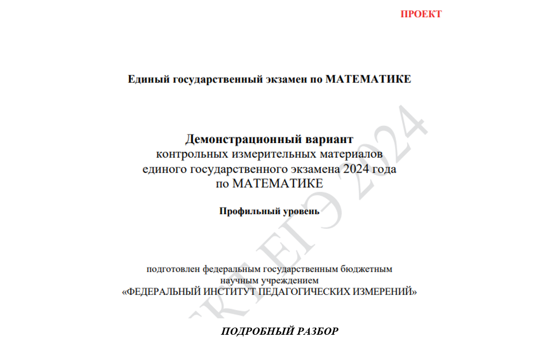 ЕГЭ по математике 2024. Профильный уровень. Разбор демоверсии от ФИПИ (25.08.2023)
