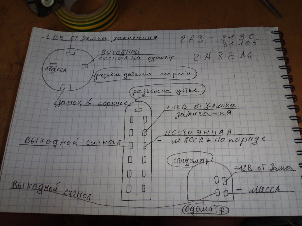 Все началось с того, что я не смог найти нормальной схемы о подключении спидометра. У меня был снятый спидометр без самого щитка приборов. Куда какой вывод я не знал. В итоге, собрав всю информацию в кучу, получилась вот такая схема. На фото ниже указана вся информация о расположении данного разъема. У всех щитков приборов под номером АР 60.3801-05 схема подключения спидометра будет одинаковая, за исключением датчика скорости, с ним разобраться не проблема. Белый разъем, стоящий вертикально, нам и нужен. Он подписан как ХР3 Он всегда здесь и на данных щитках расположен именно так. Количество выводов внутри может меняться, не пугайтесь, все зависит от комплектации авто. А вот, где он подписан. Такие же обозначения есть и рядом с остальными разъемами. Если вы любите слушать и смотреть в живую, то вот небольшое видео о данном процессе. Я надеюсь, что смог помочь вам в ремонте. До следующих встеч.