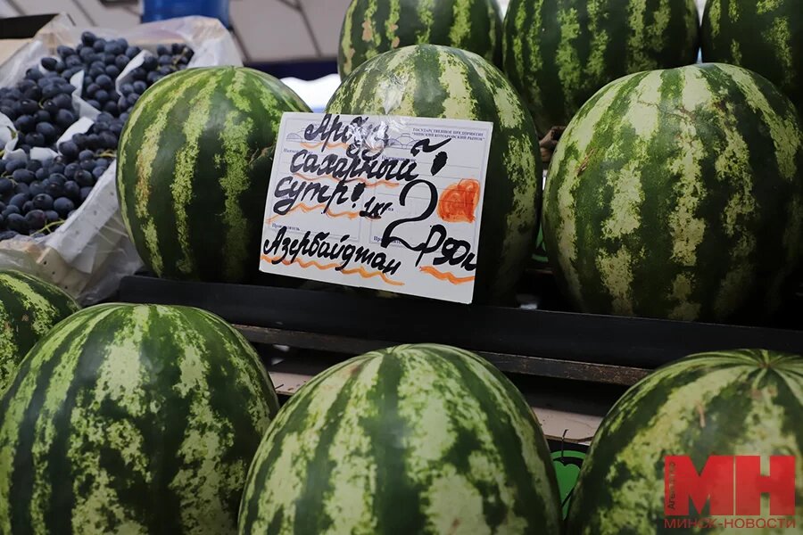 На исходе августа минчане не упускают возможность насладиться всеми радостями лета. Чтобы порадовать себя вкусными и полезными ягодами, фруктами и овощами, многие горожане отправляются на Комаровку. Корреспонденты агентства «Минск-Новости» заглянули на рынок и изучили ассортимент сезонной продукции. В конце августа большой популярностью пользуются дыни и арбузы. Предложение вполне оправдывает спрос – найти спелые и крупные лакомства на прилавках труда не составит. За килограмм арбуза продавцы просят от 2,50 до 4,50 рублей, дыни – от 2,50 до 6,90. – Покупала арбуз здесь в прошлые выходные. Выбрала не самый маленький, поэтому еле донесла до машины. Даже расстроилась, что взяла такой крупный. Но дома выяснилось, что все мои сожаления были напрасными, потому что ягода оказалась очень вкусной. Я, честно говоря, давно таких сладких и сочных арбузов не ела. Сегодня пришла еще за одним, – рассказала минчанка Ирина. Посмотрели, чем радуют ряды с фруктами и ягодами. Надо сказать, прилавки пестря