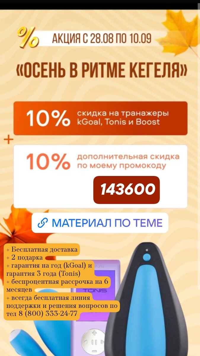 🍀Бывают случаи, когда мышцы промежности очень слабые, силой воли напрячь их не получается. В таком случае на первом этапе стоит «подкачать» мышцы с помощью курса миостимулятора.