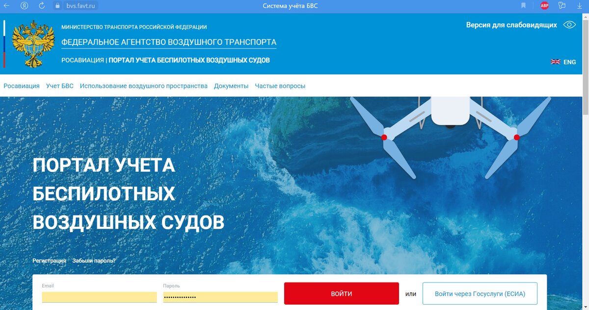 По новым законам, БВС (беспилотные воздушные суда) массой более 150г подлежат регистрации (мой самолёт получился массой неполных 600г). Значит нужно регистрировать. В поисковике, набрёл с начала на статью на хабре (https://habr.com/ru/companies/first/articles/677092/), а потом и на сайт Министерства транспорта РФ - портал учёта БВС https://bvs.favt.ru/ Логинимся на портале или регистрируемся. Я использовал вход через госуслуги. На вкладке "Мои БВС" нажимаем "Поставить БВС на учёт". Дальше заполняем бланк по пунктам (если у вас самоделка, то нужно указать - Самостоятельного изготовления). Скорость, высоту и скороподъёмность я не указывал. Просто потому, что не имел ни малейшего представления о будущих характеристиках. Теперь нужно загрузить фото и отправить на рассмотрение. Свой самолёт я на учёт поставил, правда не с первой попытки (не указал что он собственного изготовления, в итоге просто переделал и заново подал заявление и всё получилось). БВС мы на учёт поставили, а вот с полётам
